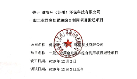2020-04-03關于健安環(huán)(蘇州)環(huán)??萍加邢薰疽话愎I(yè)固廢處置和綜合利用項目搬遷項目